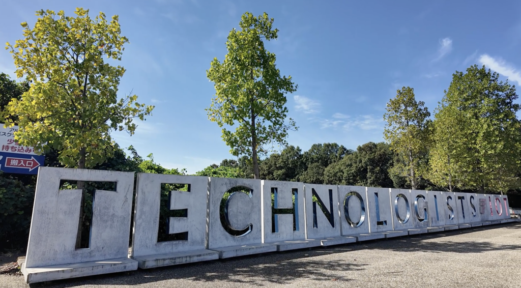 最初の驚きは、正門。文字がくりぬかれたコンクリートの壁。これ、学生が実習でつくったもの。ものつくり大学は知識と理論を基盤にした技術と、ものづくりを実践できる技能、どちらにも秀でた「テクノロジスト」を育成する大学。そのため、学生が自作するもののスケールがとにかく大きいんです。