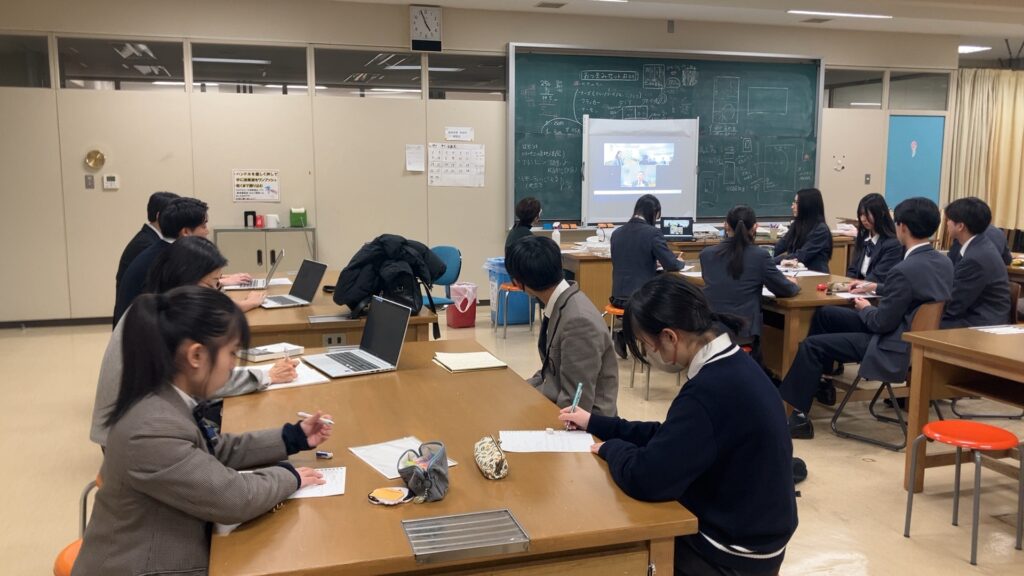 国際教養大学は2004年創立と比較的新しい大学ですが、世界的な大学ランキングTHEの日本大学ランキング2025において、国際性1位、教育充実度2位、総合でも10位にランクインするなど、国内外から高い評価を受けている大学です。その副学長から直接お話をうかがえる貴重な機会に、生徒たちは強い関心をもって臨みました。